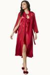 Pierre Cardin Saten Dantelli Gecelik ve Sabahlık Takımı 4375 kırmızı
