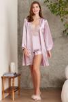 Beruflic Fuşya Kadife Dantelli Sabahlık & Gecelik Takım 3' Lü - 1437