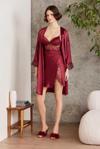 Pierre Cardin Dantelli Kadife Tulum Sabahlık Takım 4800 Bordo - Image 1