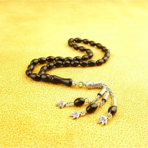 Gümüş kaplama malzemesiyle üretilmiş, uzun ömürlü ve şık bir görünüm sunar Oltu taşı kullanımı sayesinde doğal ve estetik bir dokunuşla dikkat çeker 33 püskül detayı ile zenginleştirilmiş, her bir püskülde ayrı bir zarafet ve incelik barındırır Arpa kesim tasarımı, klasik ve zamansız bir görünüm sağlayarak her tür kıyafetle uyum içinde kullanılabilir