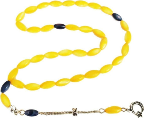 Ürün ÖzellikleriRenk:Sarı-LacivertPüskül Maddesi:MetalPüskül Ucu Figür:AyyılldızTaş:SedefToplam Uzunluk:30 cmKesim:Arpa KesimTaş Ebatı:5x10 mm