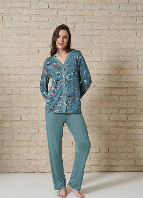 Pijadore 1729 Kadın Önden Düğmeli Uzu Kol Pijama Takım