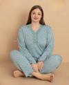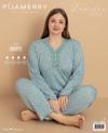 Pijamerry Kadın Büyük Beden Dantel Yaka Bambu Uzun Kol İnce Pijama Takımı 5671 - 1 Adet