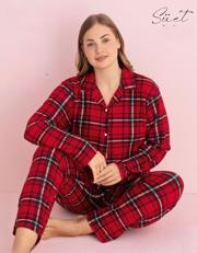 Pijamerry Kadın Büyük Beden Gömlek Yaka Süet Uzun Kol Pijama Takımı 5269- 1 Adet