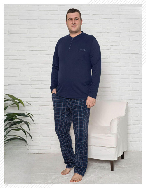 Pijamoni Erkek Battal Düğme Yaka Penye Uzun Kol Pijama Takımı 6720/15 - 1 Adet