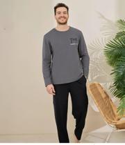 Pijamoni Erkek Pamuklu Bisiklet Yaka Uzun Kol İnce Pijama Takımı 6150/10 - 1 Adet