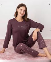 Pijamoni Kadın Milan Bisiklet Yaka Uzun Kol İnce Pijama Takımı 7600/36 - 1 Adet