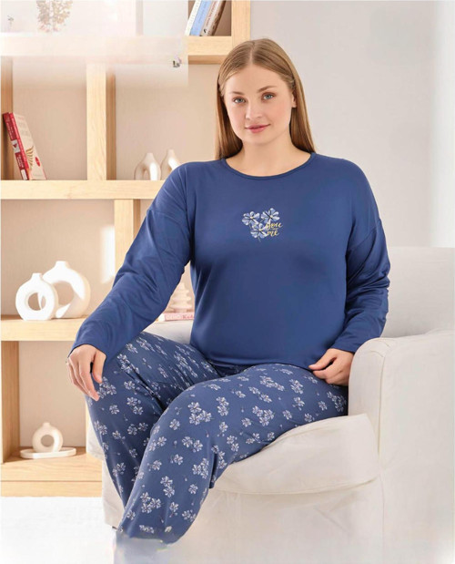 Pijamoni Kadın Sofya Büyük Beden Bisiklet Yaka Uzun Kol İnce Pijama Takımı 8720/4- 1 Adet