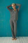 Pijamoni Kadın Süet Boydan Düğmeli Pijama Takımı - 5660-4 üstü ve altı olmak üzere iki parçadan oluşmaktadır. Alt pijama cep detaylıdır.