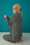 Kadın Süet Boydan Düğmeli Pijama Takımı - 5660-4 Siyah-XL