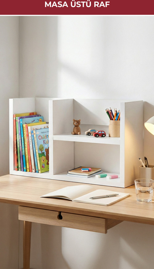 Fonksiyonel Raf Yapısı: Kitap, defter, kalem, ofis malzemeleri, baharat, kupa, dekoratif ürünler ve küçük aksesuarlar için uygundur.