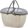 Piknik sepeti, dayanıklı plastik materyalden üretilmiştir, böylece uzun süreli kullanım için idealdir. - Bej rengiyle doğal bir görünüm sunar ve her türlü piknik ortamına kolayca uyum sağlar. - Kolay temizlenebilir yapısı sayesinde hijyenik bir kullanım imkanı sağlar. - Hafif ve taşıması kolay tasarımı ile piknikte veya doğa yürüyüşlerinde rahatlıkla taşınabilir. - İçerisindeki bölmeler sayesinde yiyecek ve içeceklerinizi düzenli bir şekilde saklamanızı sağlar. - Kapasite 25 Litre