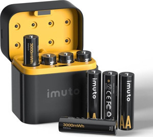 Imuto 3000mWh AA & 1300mWh AAA Lityum Şarjlı Pil Seti (4+4) Yuvalı Şarj Ünitesi - Image 1