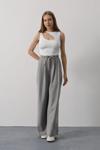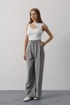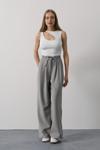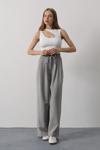 Pileli Bağcıklı Oversize Pantolon - Gri