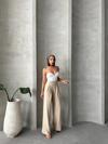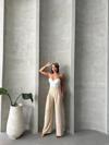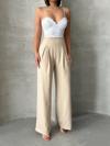 Pileli keten pantolon, yaz aylarında şıklık ve rahatlık arayan kadınların tercihi olacak