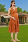 PayBuy Pileli Midi Elbise Polyester Örme Yazlık Günlük Şık Özenle Seçilmiş Modern Stil Zarifane Tasarım