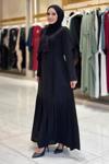 - Elbisenin ön kısmında belli bir bölüme kadar açılıp kapanan düğme detayı vardır.