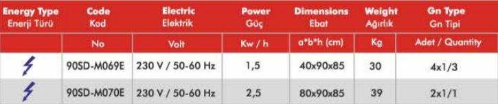 ✓ Standart GN kaplar