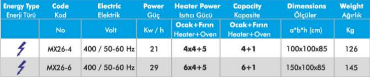 ✓ Üst ocaklar ayrı ayrı çalışabilme özellikli
