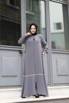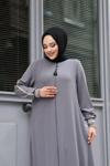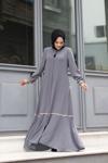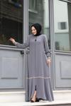 Hakim yaka detayı ile modern ve şık bir görünüm kazandırırken, tesettür giyim koleksiyonunun vazgeçilmez parçası haline gelir