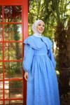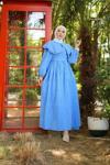 Hafsa Mina Eteği Püsküllü Yaka Bağcıklı Kot Elbise Açık Mavi HM2459