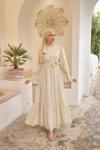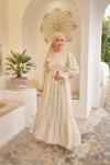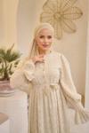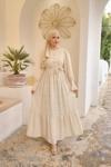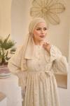 Pink Fly Güpürlü Kuşaklı Düğmeli Kesme Şifon Boydan Astarlı Uzun Kadın Büzgülü Fırfırlı Kol Tesettür Elbise