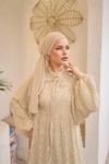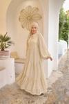 BAV Butik Ayvitrin Kadın Melenj Keten Tesettür Elbise Krem