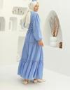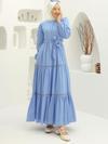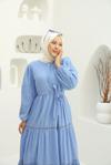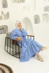 Pink Fly Kadın Dokulu Kuşaklı Astarlı Fisto Uzun Tesettür Elbise