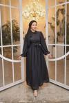 Şık ve gece ortamları için ideal olan bu elbise, tül dokuma kumaşıyla hafif ve havadar bir his verir