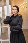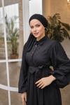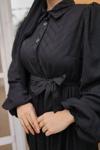 Gömlek yaka tasarımı ile şıklığı ve rahatlığı bir arada sunan kesme şifon boydan astarlı gömlek yaka uzun kadın balon kol tesettür elbise, her yaş grubuna hitap eden zarif bir seçimdir