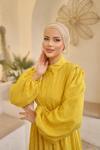 Şık ve zarif tasarımıyla dikkat çeken bu gömlek yaka uzun kadın elbise, yaz aylarının vazgeçilmezi
