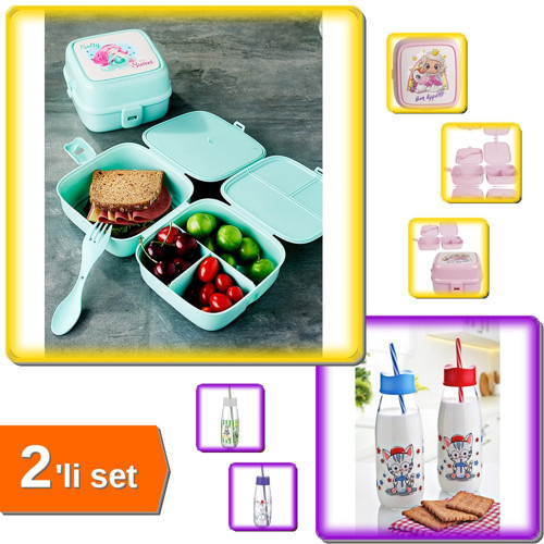 Hereveoyuncak Pipetli Cam Şişe 250 ML + 4 Bölmeli Diyet Beslenme Kabı | Sağlıklı Öğün Keyfi! X7B4Q2 (Ue)