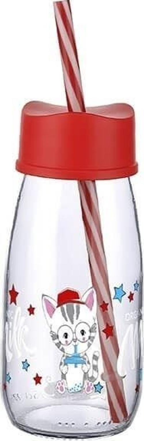 1 Adet Hayvan Figürlü Pipetli Su Ve Süt Şişesi Cam 250 ML