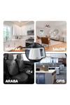 3,5 Bar buhar basıncı 450 ML su haznesi 3-5 Dk ısınma süresi 12 Dk sürekli buhar performansı 3 m kablo uzunluğu 52 cm hortum uzunluğu Herhangi birkimyasala ihtiyaç olmadan temizler ve evde hemen her yerdekullanılabilir.