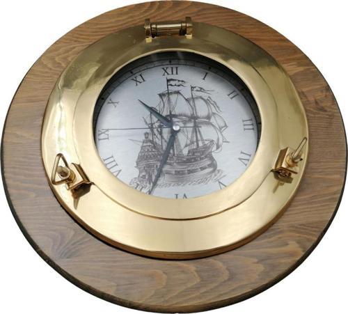 Pirinç Döküm Lumboz Yelkenli Motifli Ahşaplı Çap 40cm Duvar Saati