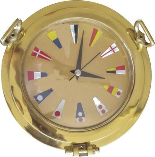Pirinç Döküm Lumbozlu İşaret Sancaklı Motifli Çap 20cm Duvar Saati