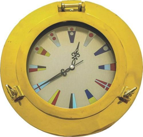 Pirinç Döküm Lumbozlu İşaret Sancaklı Motifli Çap 30cm Duvar Saati N2