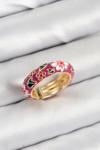 Pirinç Fuşya Mineli Çiçek Motifli Gold Renk Ayarlanabilir Kadın Yüzük
