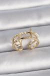 Pirinç Gold Renk Ayarlanabilir Sıralı İncili Zirkon Taş Detaylı Kadın Yüzük - Image 1
