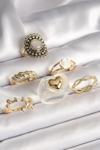 Pirinç Gold Renk Beyaz Gül Figür Kalp İşlemeli Sarmal Detay 6'Lı Kadın Yüzük Seti