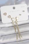 Stil Love Pirinç Gold Renk Beyaz Mineli Sallantı Mineli Kalp Model Zirkon Taş Detaylı 925 Ayar Gümüş Çivi Kadın Küpe Seti SL11433