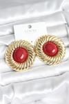 X-lady Accessories Altın Renk Kombin Kırmızı Boncuk Küpe - 2819