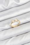 Pirinç Beyaz Mineli Çiçek Motifli Gold Renk Ayarlanabilir Kadın Yüzük - Image 1