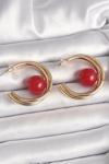 Pirinç Gold Renk Halka Model Kırmızı Boncuk Detay Kadın Küpe