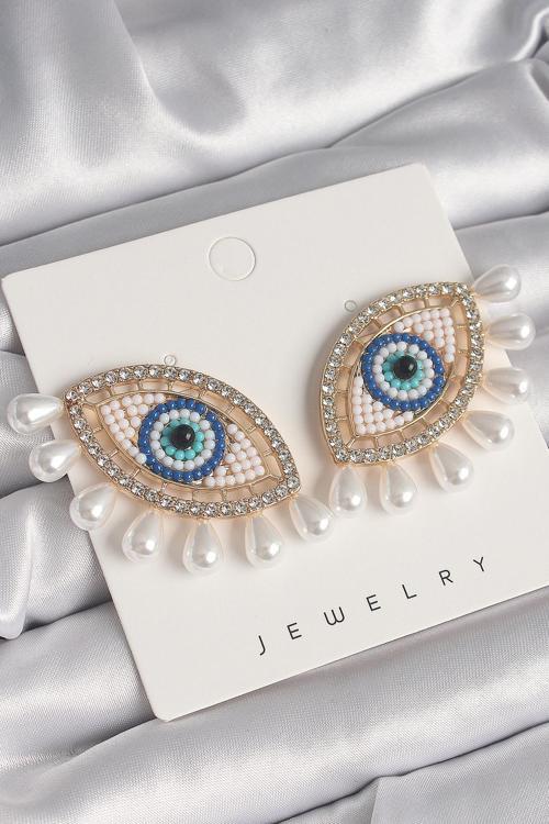 Skygo Pirinç Gold Renk Nazar Boncuk Göz Model İnci Detay Kadın Küpe - TJ-BKP10217
