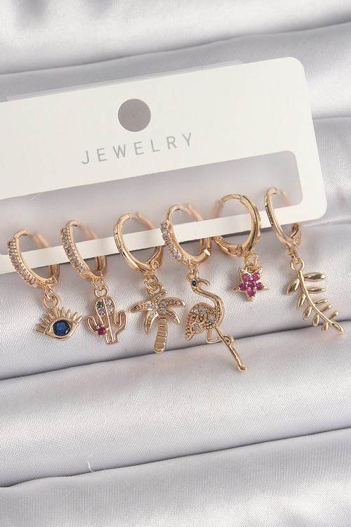 Callerrons Accessories Pirinç Gold Renk Sallantı Zirkon Taşlı Deve Kuşu Figür Çoklu Kadın Küpe Seti - EBJ250201W30999
