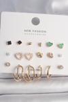 Stil Love Pirinç Gold Renk Sallantı Zirkon Taşlı Halka Model Damla Zirkon Taş Detay Çoklu Kadın Küpe Seti