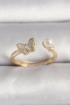 Pirinç Gold Renk Zirkon Taş Detaylı Beyaz Mineli Kelebek Model İnci Detay Ayarlanabilir Yüzük