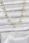 Pirinç Gold Renk Zirkon Taşlı Çiçek Model Detaylı 3'lü Kombin Y Kadın Kolye - EBJ251115W38430 - Image 1