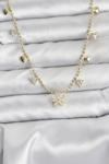 Skygo Pirinç Gold Renk Zirkon Taşlı Çiçek Model Kadın Kolye